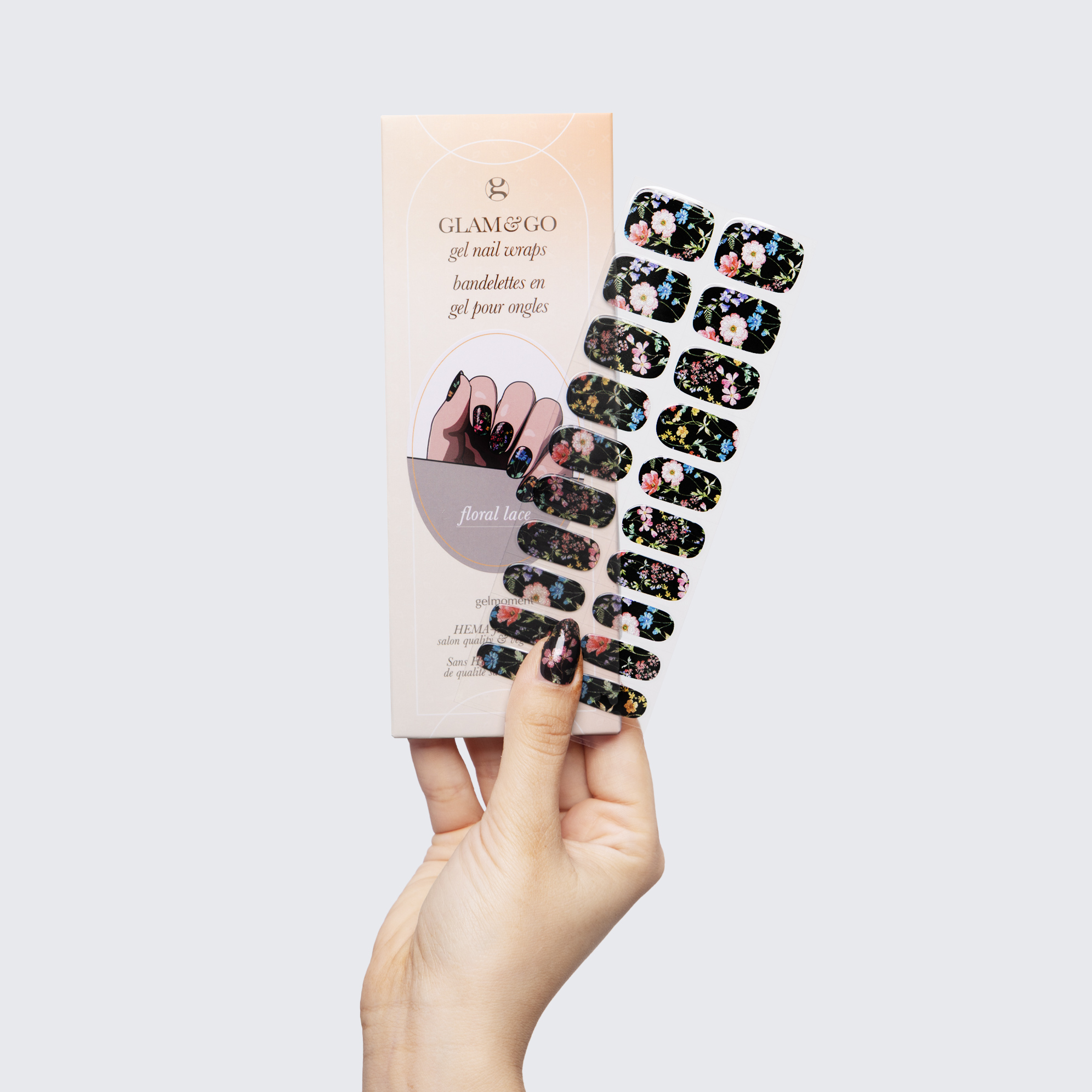 Plus, not only do GLAM & GO gel nail wraps provide the same glossy finish you know and love from our regular gel polish, but they are also HEMA FREE and have a wear time of up to 14+ days.